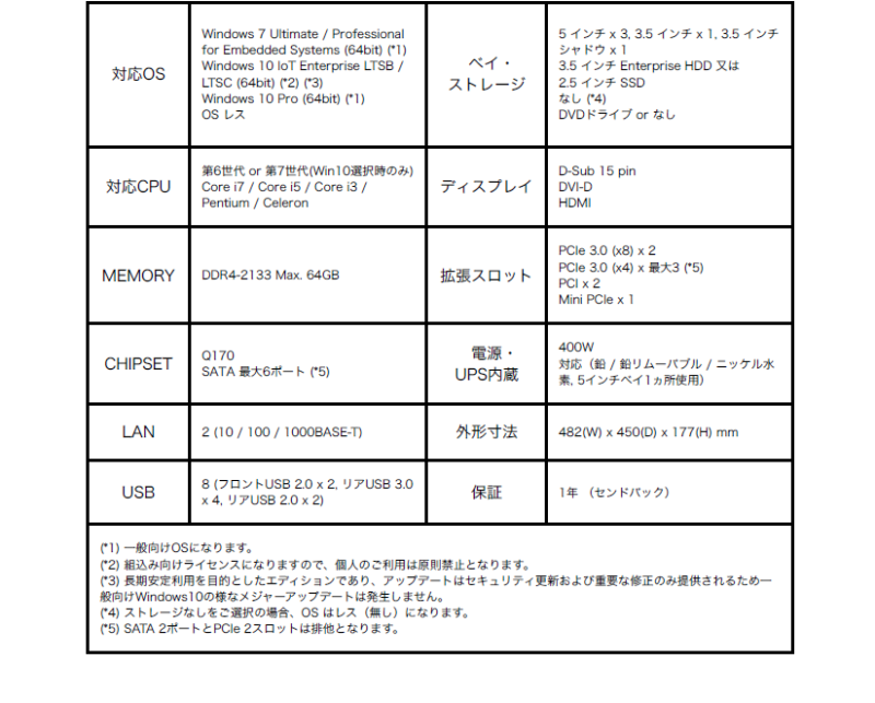 OSはWindows 7 Ultimate /Professional、Windows 10 IoTEnterprise LTSB、LTSC、Windows10 Pro に対応。