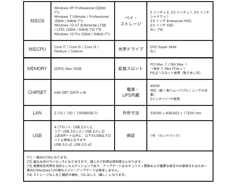 OSはWindows XP Professional、Windows 7 Ultimate / Professional、Windows 10 IoT Enterprise LTSB、LTSC、Windows10 Pro に対応。